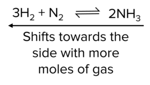 - So will shift to the left since there are fewer moles of gas; there is 1 mole on the left and 2 moles on the right.