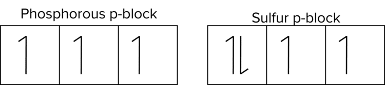 - Although the outer electrons in both phosphorous and sulfur are in 3p orbitals, the outer electron of sulfur is paired up with another electron while the outer electron of phosphorous is not.