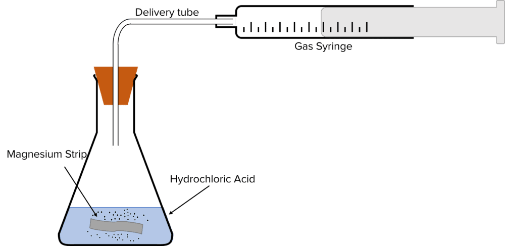- Set up a gas syringe and delivery tube to collect the gas evolved during the experiment.