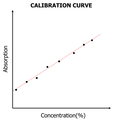- Plot graph of relative absorption vs concentration (calibration curve). You should find that the amount of light absorbed is proportional to the concentration of the absorbing species.