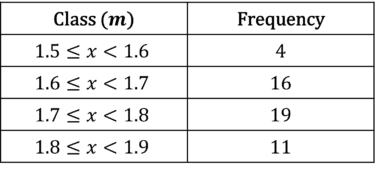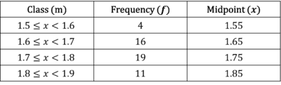 Example: Estimate the mean and variance of the heights of the teachers at a school from the following table.
