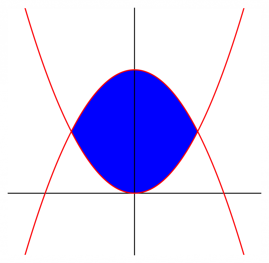 Example: Find the area between the curves y=x^{2} and y=2-x^{2}.