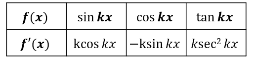 G2 – Differentiate e^{kx} and a^{kx}, \sin(kx), \cos(kx), \tan(kx) and related sums, differences and constant multiples