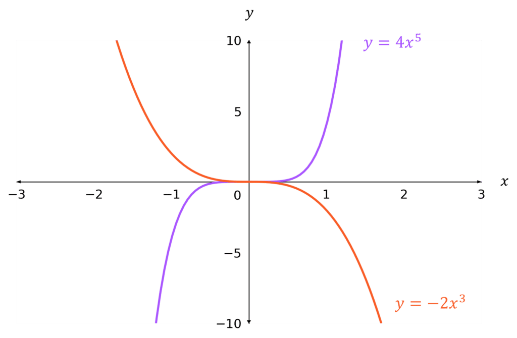 Question 1: Sketch the graph of y=-2x^5, labelling any points of intersection with the axes.