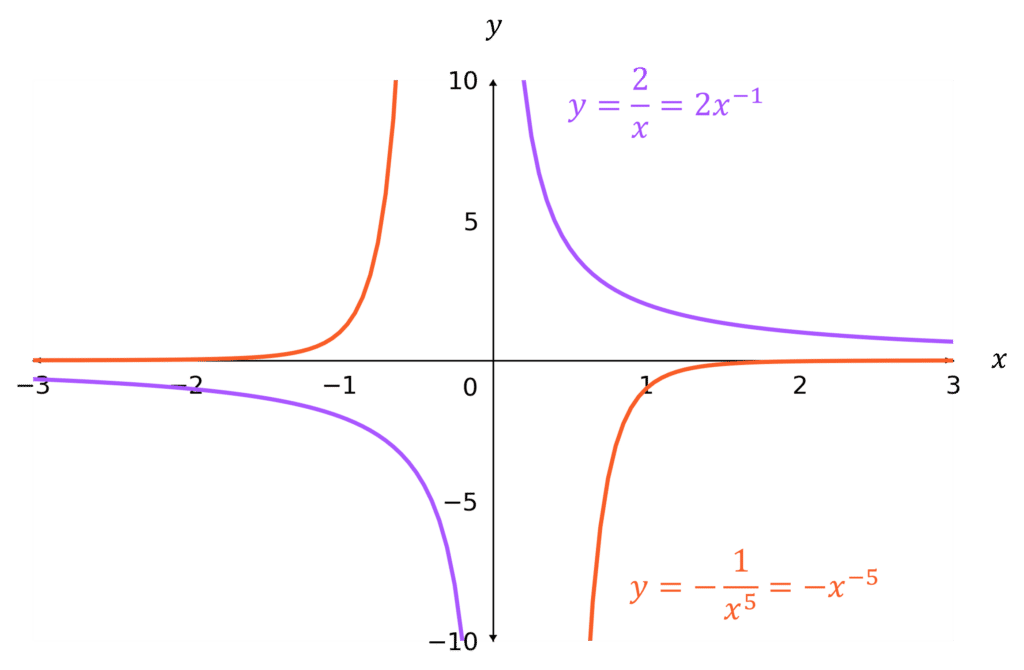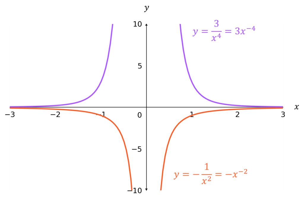 y=\dfrac{a}{x} and y=\dfrac{a}{x^2} (including their vertical and horizontal asymptotes);