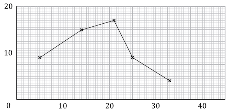 The midpoints are 5,14,21,25,33, so we plot the points: