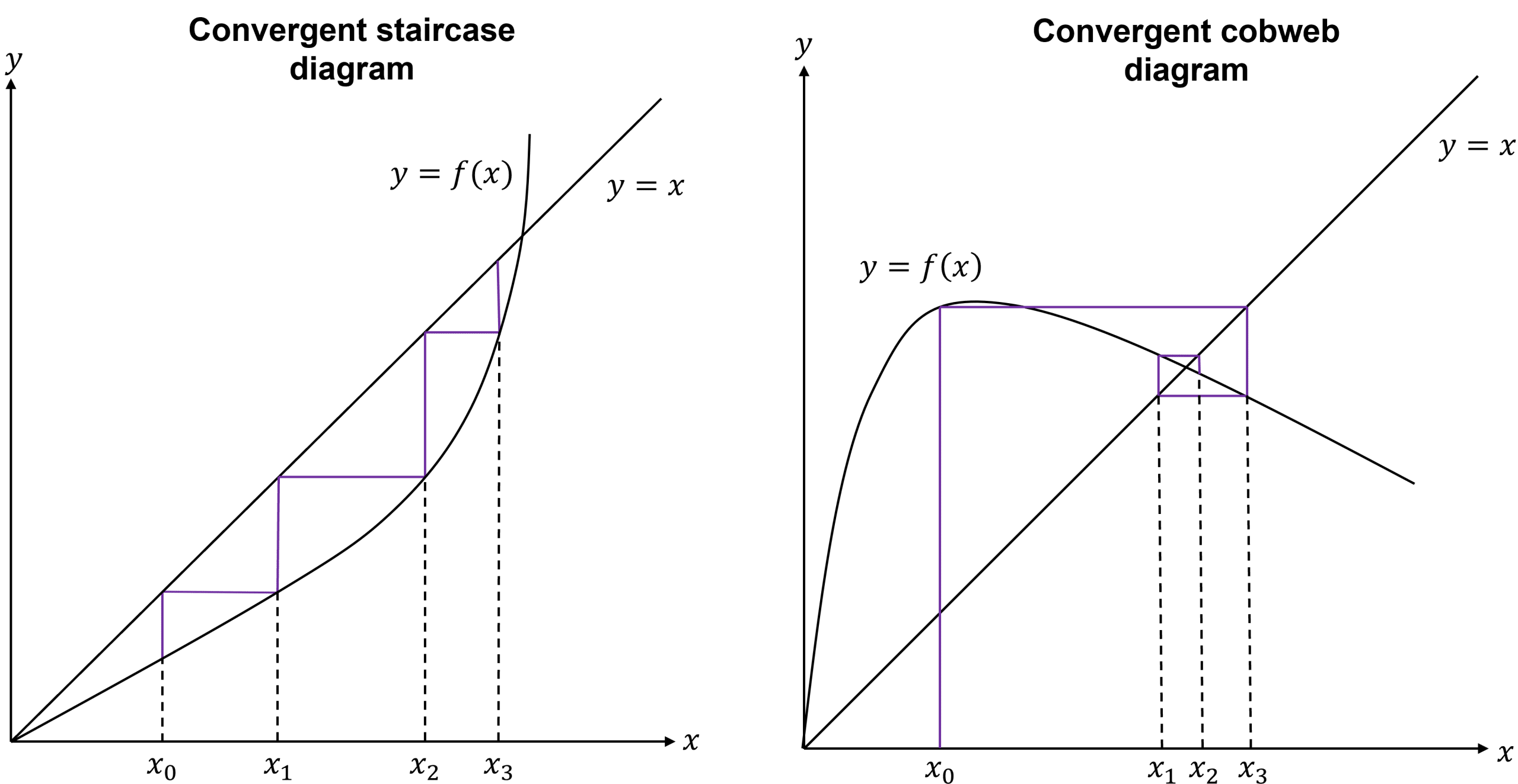 I2 – Solve equations approximately using simple iterative methods; be able to draw associated cobweb and staircase diagrams; understand how such methods can fail