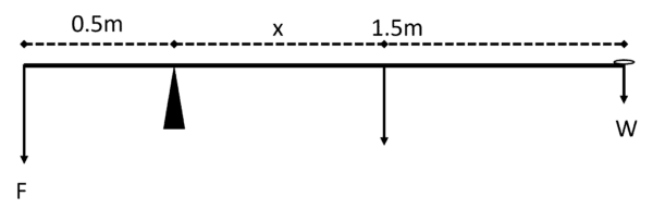 Question 3: Find the value of F in this diagram, given that the pivot B is at the point of tilting.