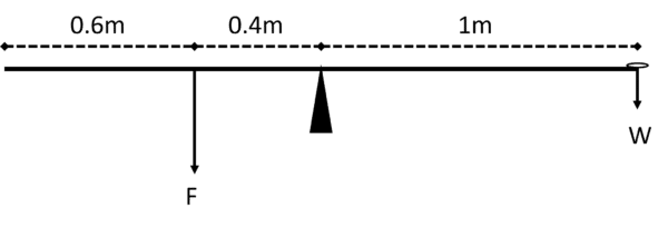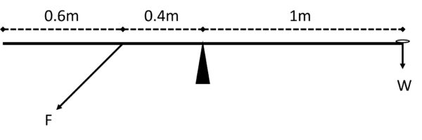 Anticlockwise moment: \textcolor{orange}{0.4} \times F = 0.1\text{ Nm}