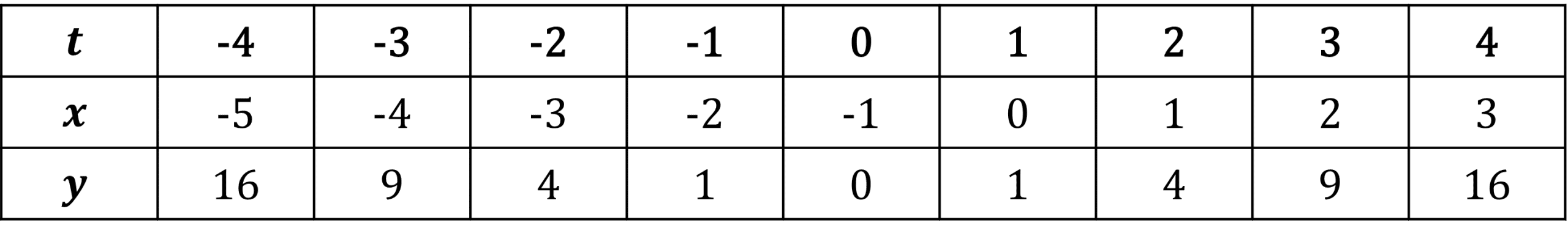 Example: For the graph x=t-1 and y=t^{2}, find the value of y when x=5.