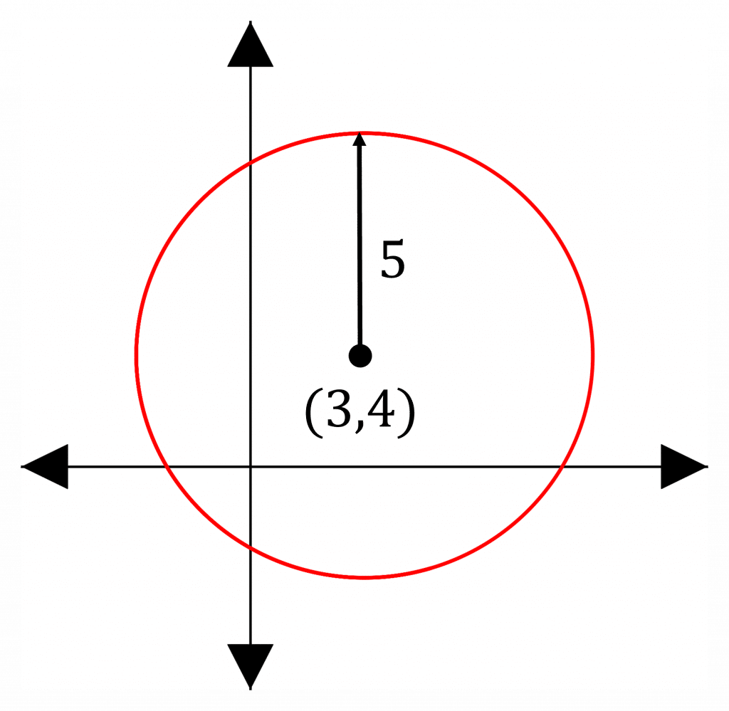 Example: The picture on the right shows a circle with centre (3,4) and radius 5.