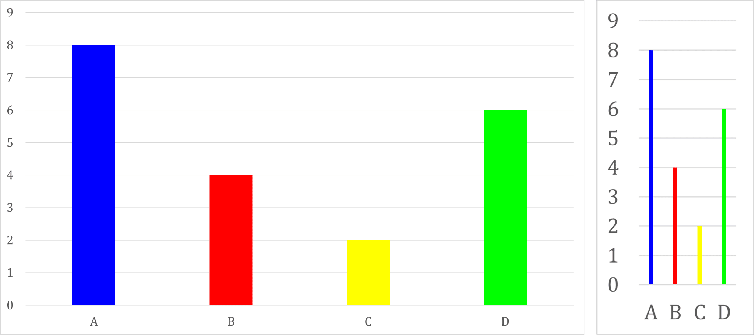 Pictured below is a standard bar chart and a bar chart using lines instead of bars.