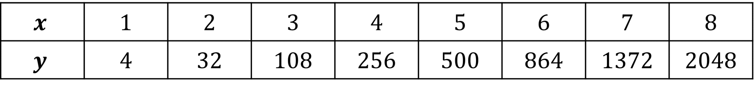 Question 2: The value of an investment in MathCoin is believed to reliably climb following an ax^{n} trajectory. Claire buys one MathCoin and monitors the price of her investment every month over one year. Find a and n.