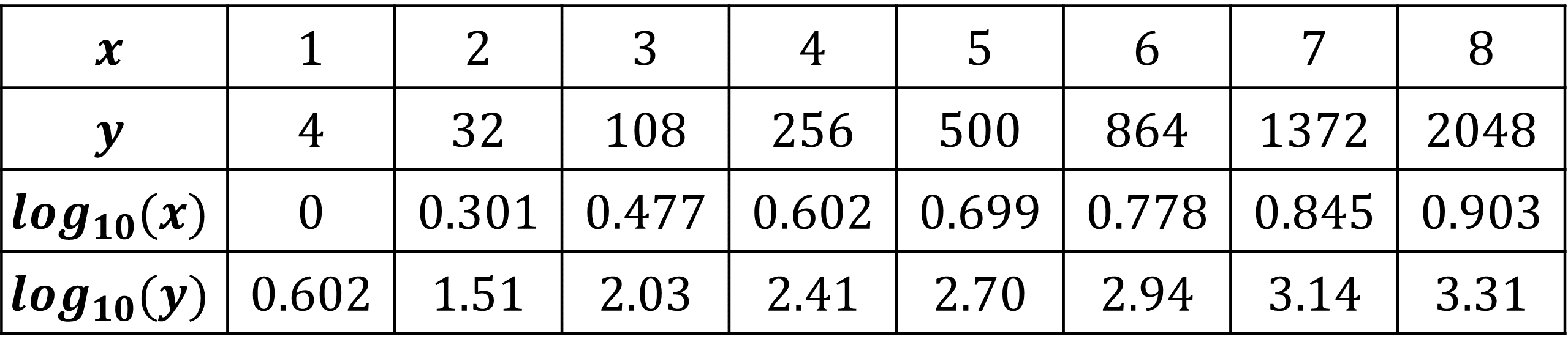 Step 1: Calculate \log_{10}(x) and \log_{10}y and put them in a table.