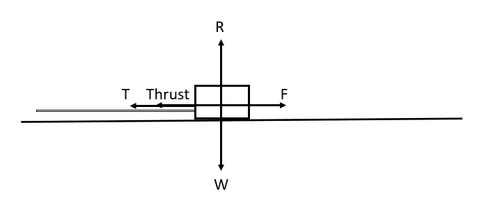 So, T + \text{Thrust} = F and R = W.