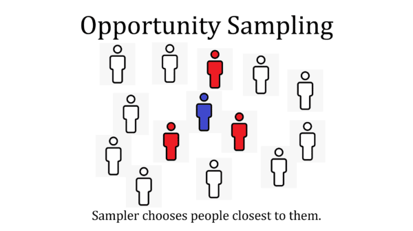 Opportunity or convenience sampling is a sample based on what is convenient for the sampler. For example, it could be a survey handed out to the friends and family of the sampler because this is easier than contacting people they do not know.
