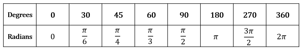 Below is a table of key angles and corresponding values that you’ll need to know, moving forward.