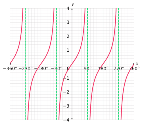 You might’ve also noticed that \tan 90° and \tan 270° don’t have any values. Well, think about the triangle above. If we’re looking to use the opposite and adjacent sides, our opposite is technically the hypotenuse. How, then, would we decide which adjacent side is ‘the adjacent’?