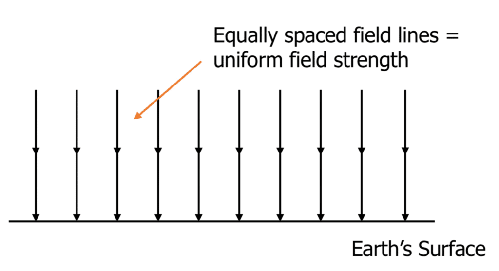 Question 4: The diagram below shows a uniform gravitational field. How would the diagram change if a change in density caused the field strength to be non-uniform?