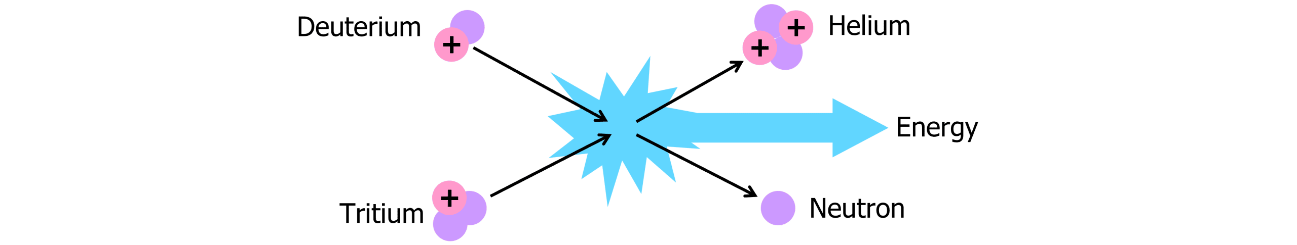 In this process, deuterium and tritium must have very large kinetic energies before they collide. If they have too little kinetic energy, the nuclei will never overcome the force of electrostatic repulsion. Once the nuclei get close enough, the strong nuclear force takes over, fusing the nuclei to form Helium and an emitted neutron.