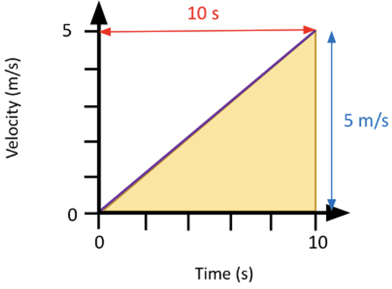 We know that the area under a velocity-time graph represents the distance. The area is a triangle, so: