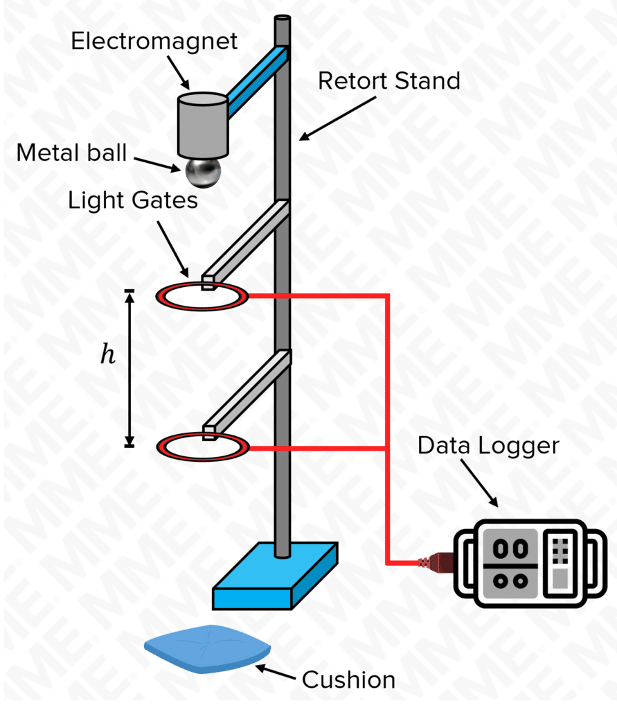 - Measure the distance between the light gates. This is h, and an appropriate starting value for h would be 10 \: \text{cm}.