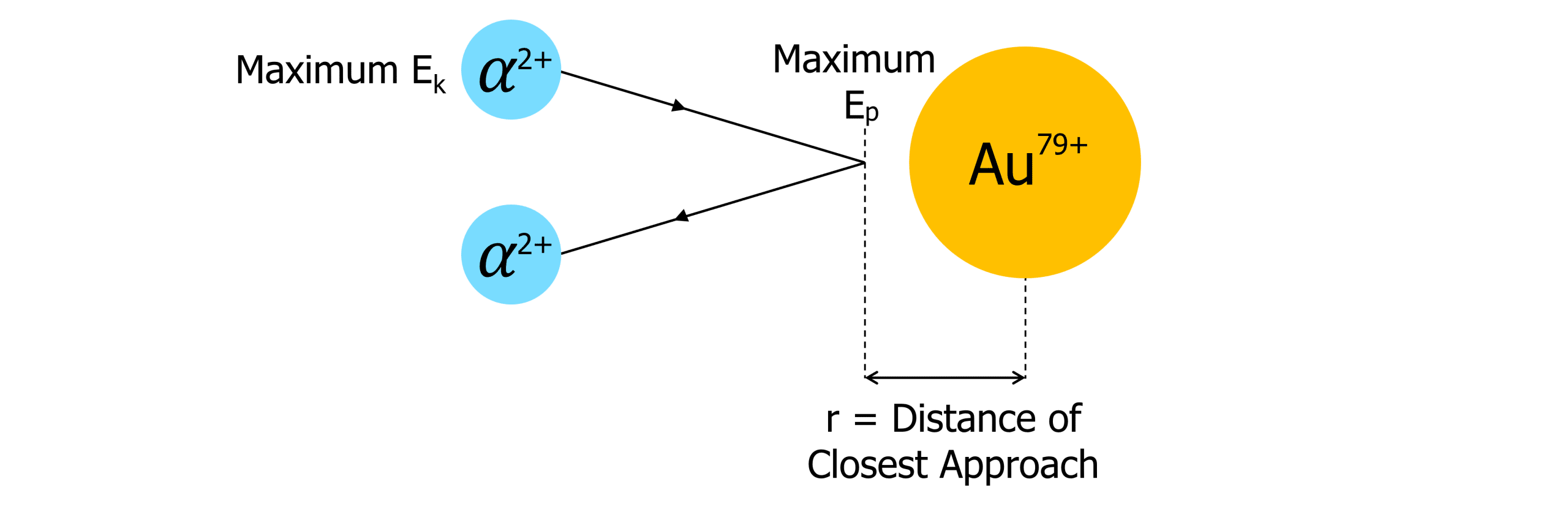 As seen previously, if a beam of alpha particles are fired at a sheet of gold foil, some of the alpha particles will reflect back to the source. The reason for this phenomenon is the electrostatic repulsion between the positive alpha particle and the positive nucleus.