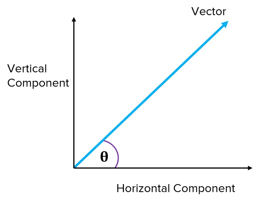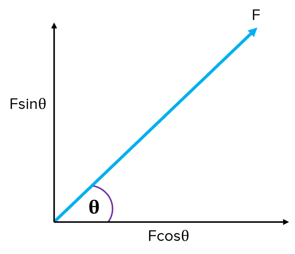 The horizontal and vertical components of this vector can be calculated using the trigonometry above, where F is the vector and theta (θ) the angle.
