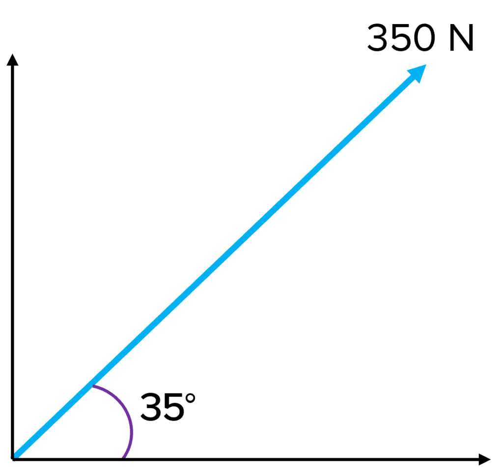 - \text{Horizontal component} = 350 \times \cos\left(35\right) = \boldsymbol{290 \:} \textbf{N}