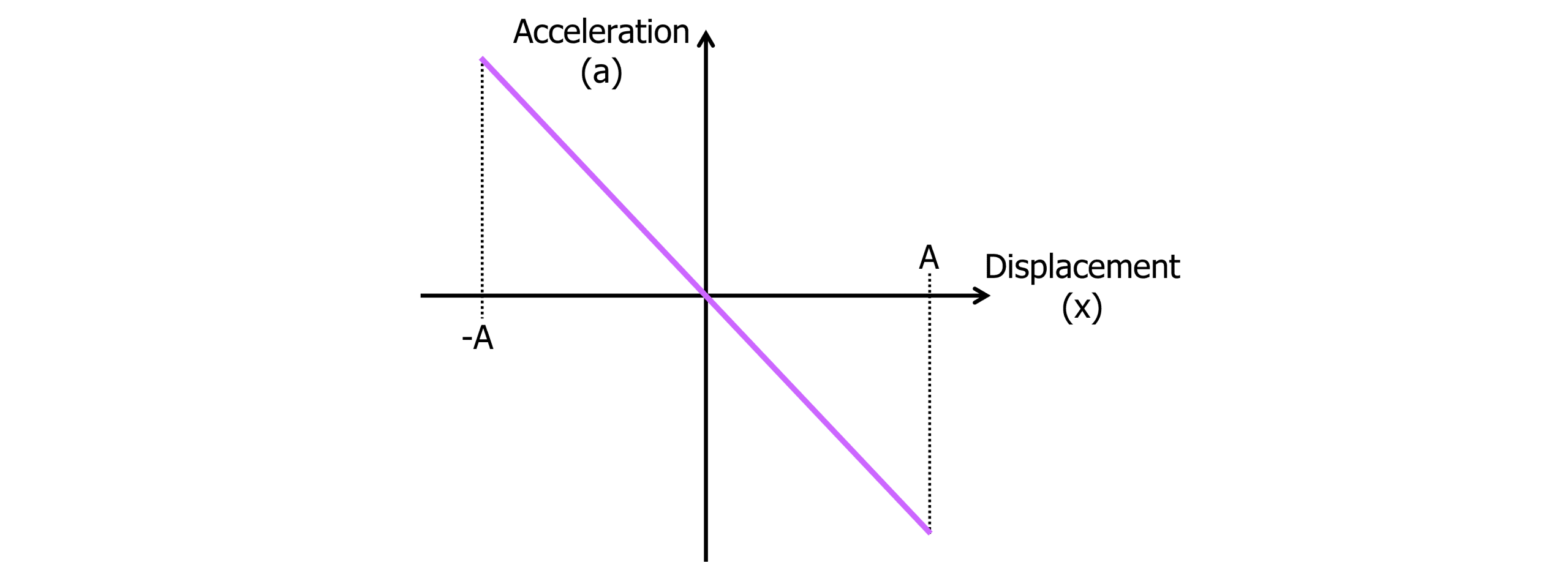 The displacement is directly proportional to the negative acceleration of the simple harmonic oscillator. Plotting a displacement-acceleration graph forms a straight line through the origin where the gradient is equal to \omega^2.