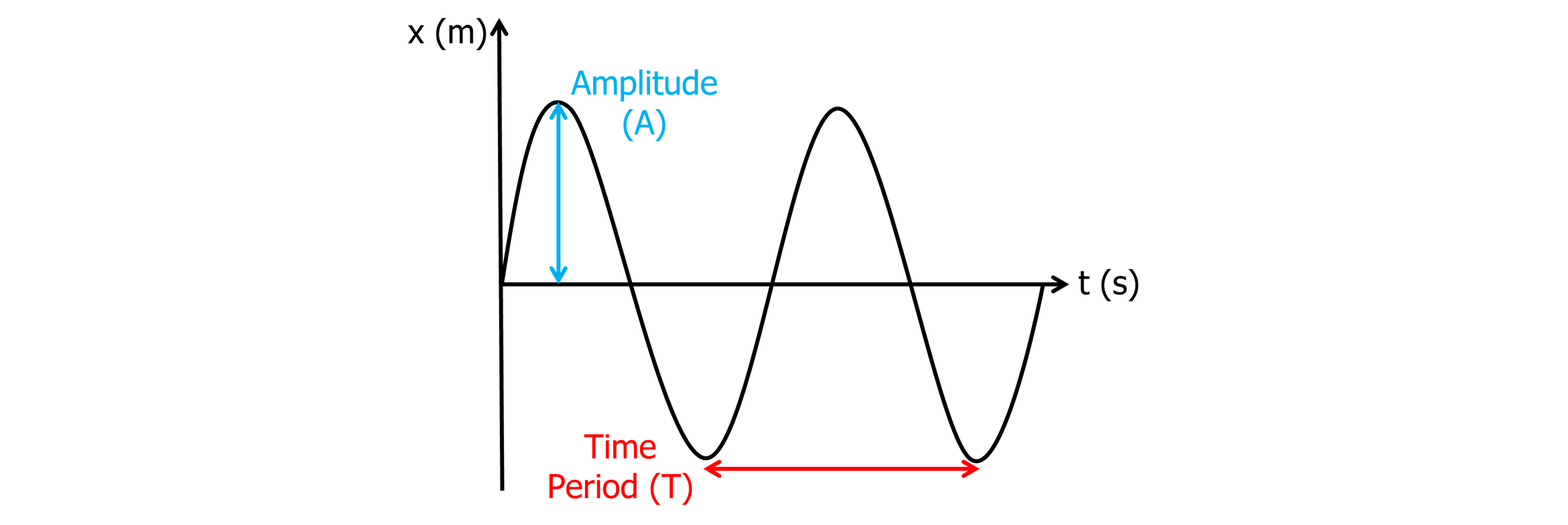 From the graph we can see the points of maximum displacement at either end. These are known as the amplitude of the simple harmonic oscillator (A). The displacement (x) at any given point can be found using the equation: