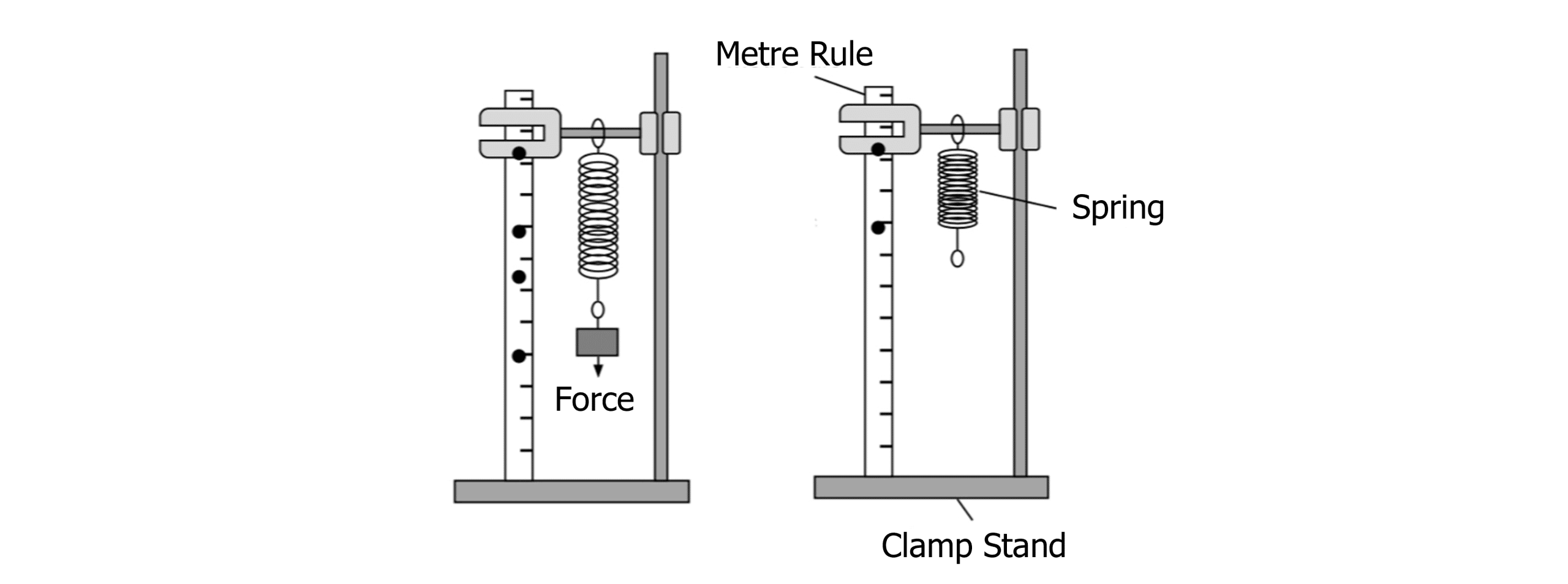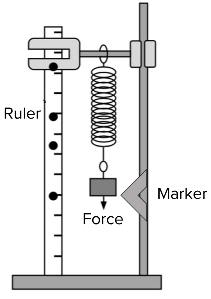 - Pull the mass hanger down 5 \text{ cm} ensuring it passes the marker.
