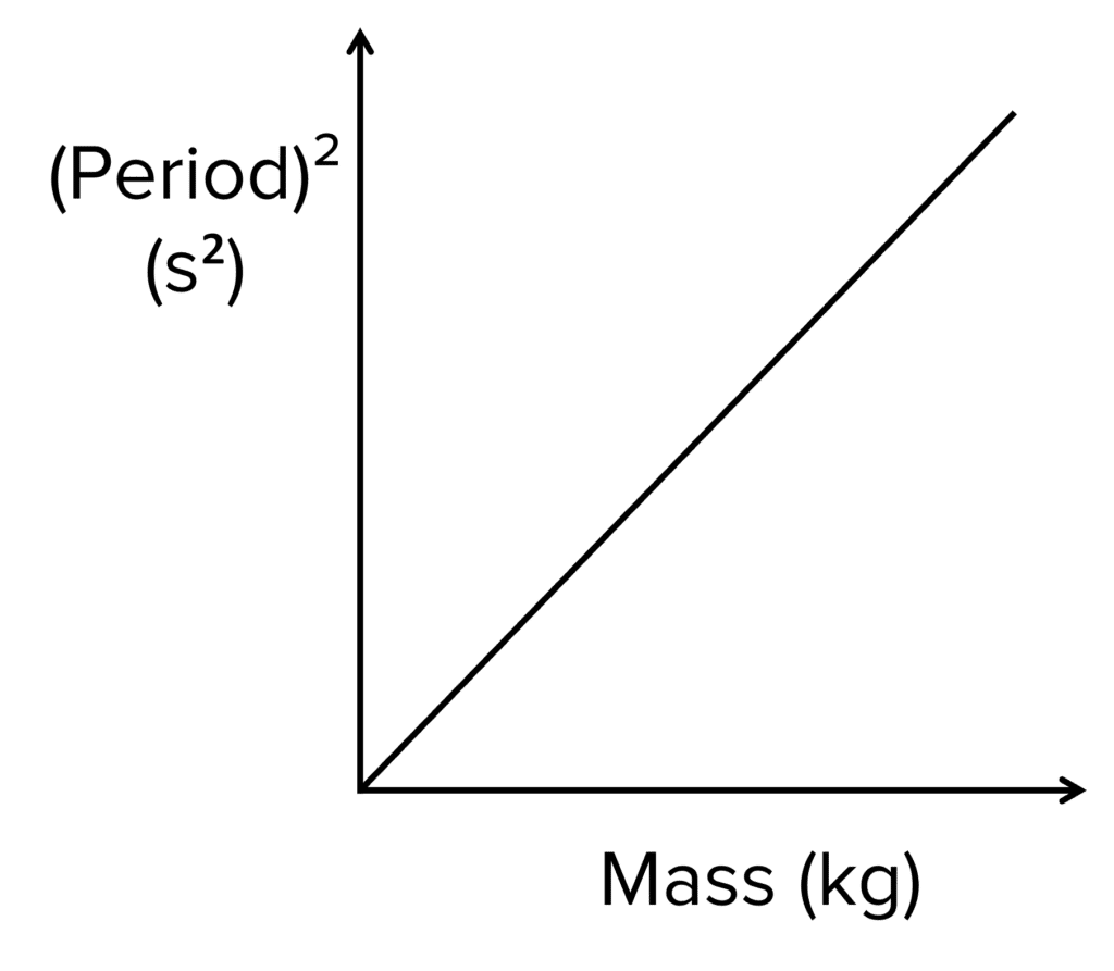 As the equation T = 2 \pi \sqrt{\dfrac{m}{k}} can be rearranged to give T^2 = 4 \pi ^2 \dfrac{m}{k}, the gradient of the graph represents \dfrac{4 \pi ^2}{k}.