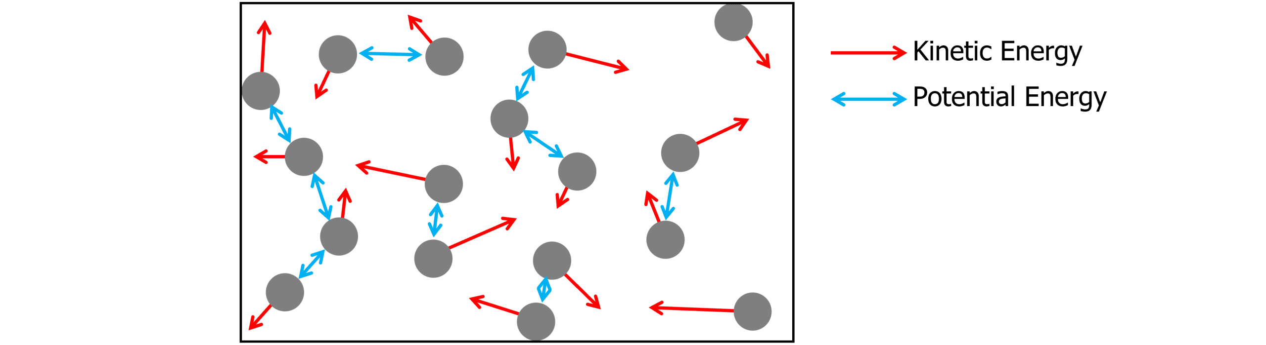 Potential energy – this is the energy a substance has due to the intermolecular forces between particles. As the particles move further apart, the potential energy increases between molecules.