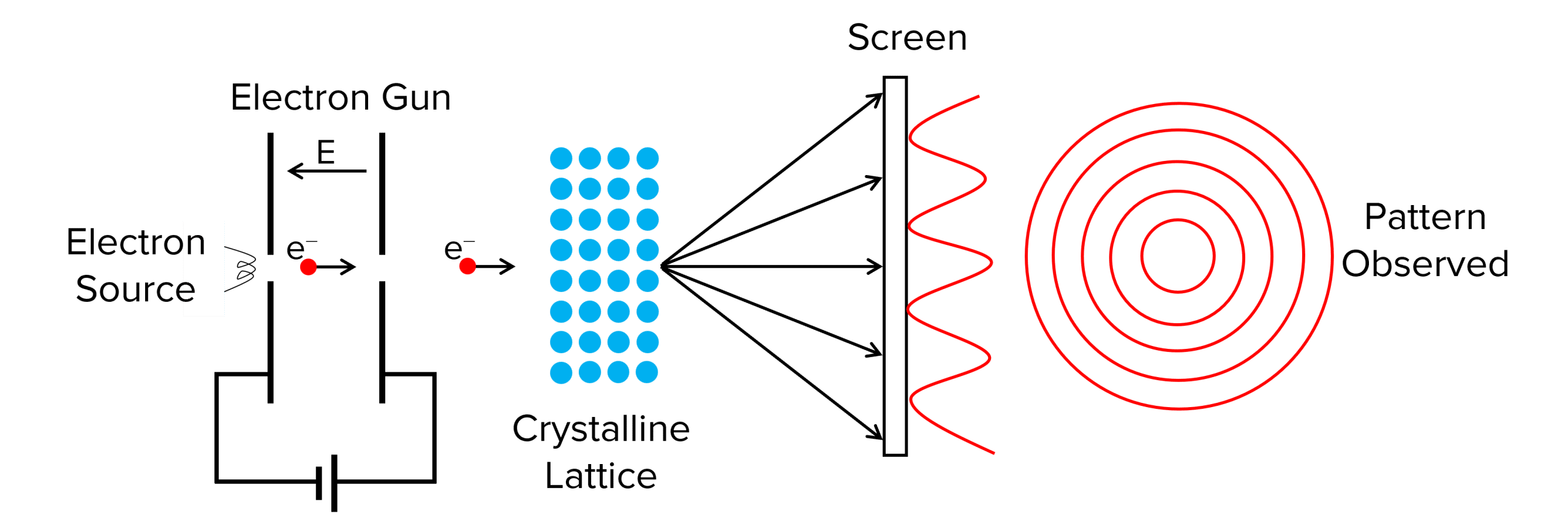 What de Broglie observed was that the electrons he fired through the grating diffracted, producing a particular pattern of concentric rings on the screen. He also observed that as the velocity of the electrons was increased, the diameter of the rings decreased.