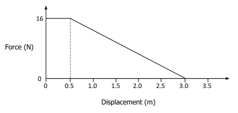 Example: The graph below shows how the force of carrying an object changed with displacement. Calculate the work done carrying the object 3 metres.