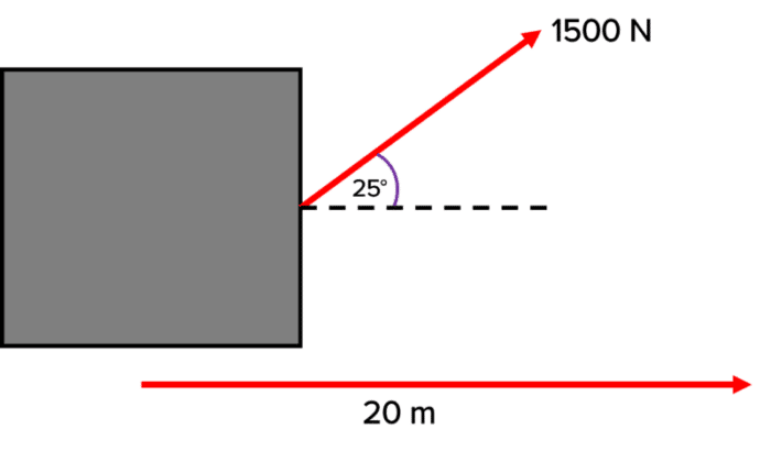 Example: If an object is moved 20 \: \text{m} with a constant force of 1500 \: \text{N}, how much work is done?