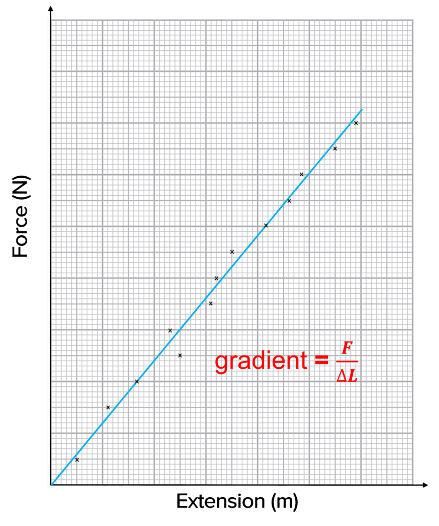 The gradient of this graph will give \dfrac{F}{\Delta L}.