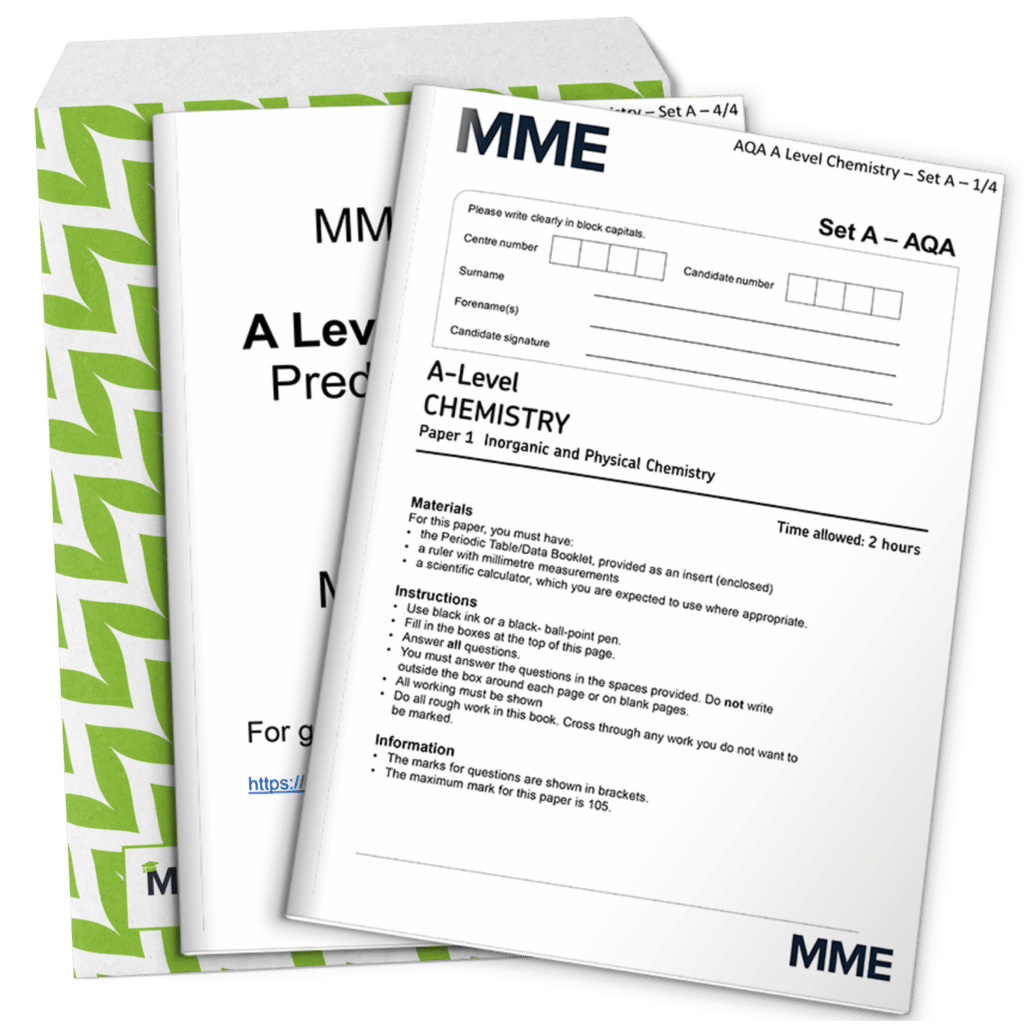 Our A Level Chemistry Predicted Papers are exclusive to MME, containing new and unseen questions. These papers are an excellent resource to use when preparing for your exams, having been designed by content experts and tutors.