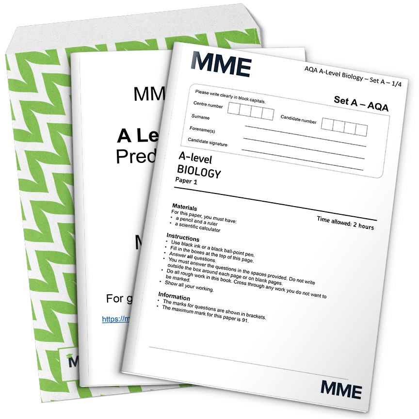 MME’s A Level Biology Predicted Papers have been designed by content experts and tutors, to match the layout and difficulty level of the real AQA Biology exams. The exam papers cover the entire A Level Biology specification, replicating the exam format of the real AQA exams, with all new questions that are exclusive to MME.