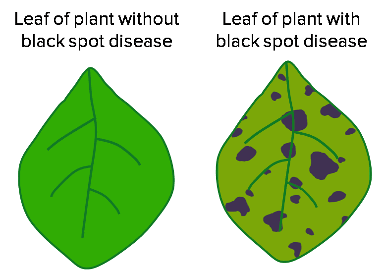 - TMV causes a mosaic pattern, rose black spot disease causes spots.