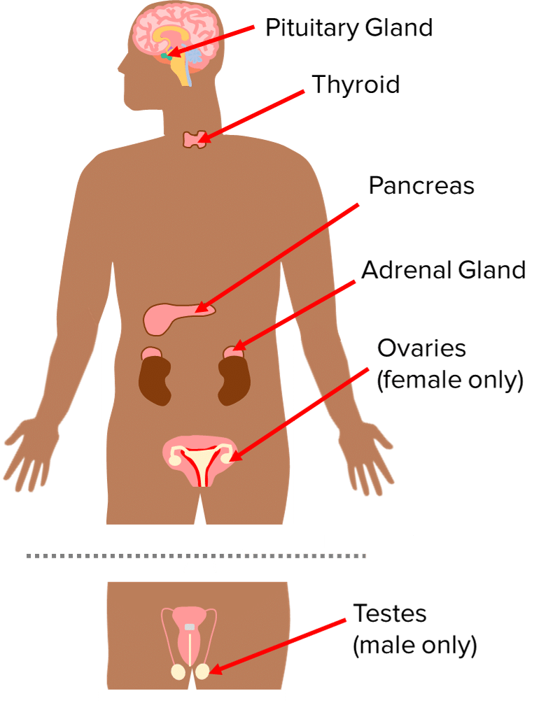 Endocrine glands in the human body: