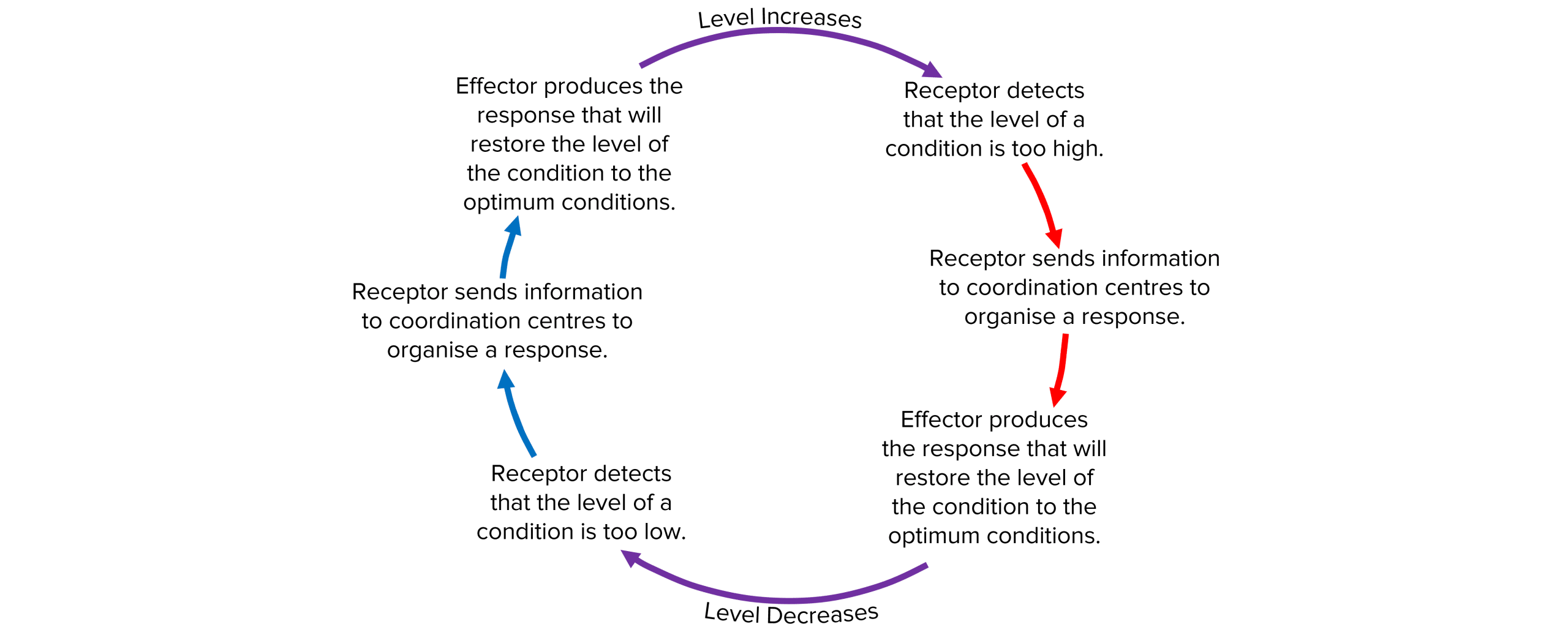 Effectors continue producing responses as long as they are stimulated by coordination centres which means it is common for the level to be increased/decreased too much. In these cases, negative feedback begins again in the opposite direction.