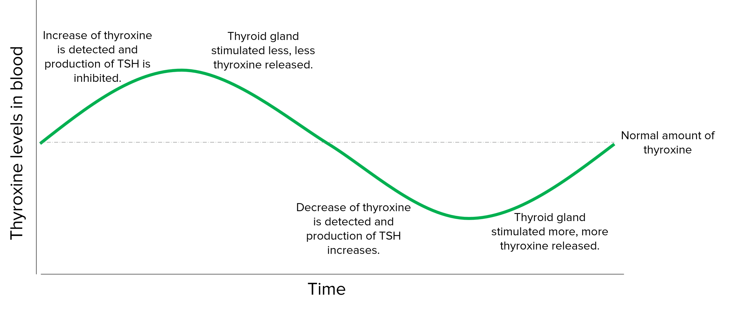 - When thyroxine levels become too low, the secretion of TSH is increased, increasing the amount of thyroxine released from the thyroid gland.