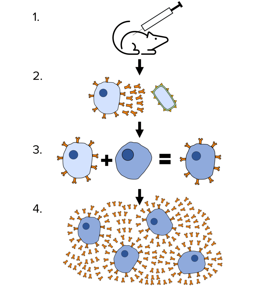- A mouse is injected with an antigen.