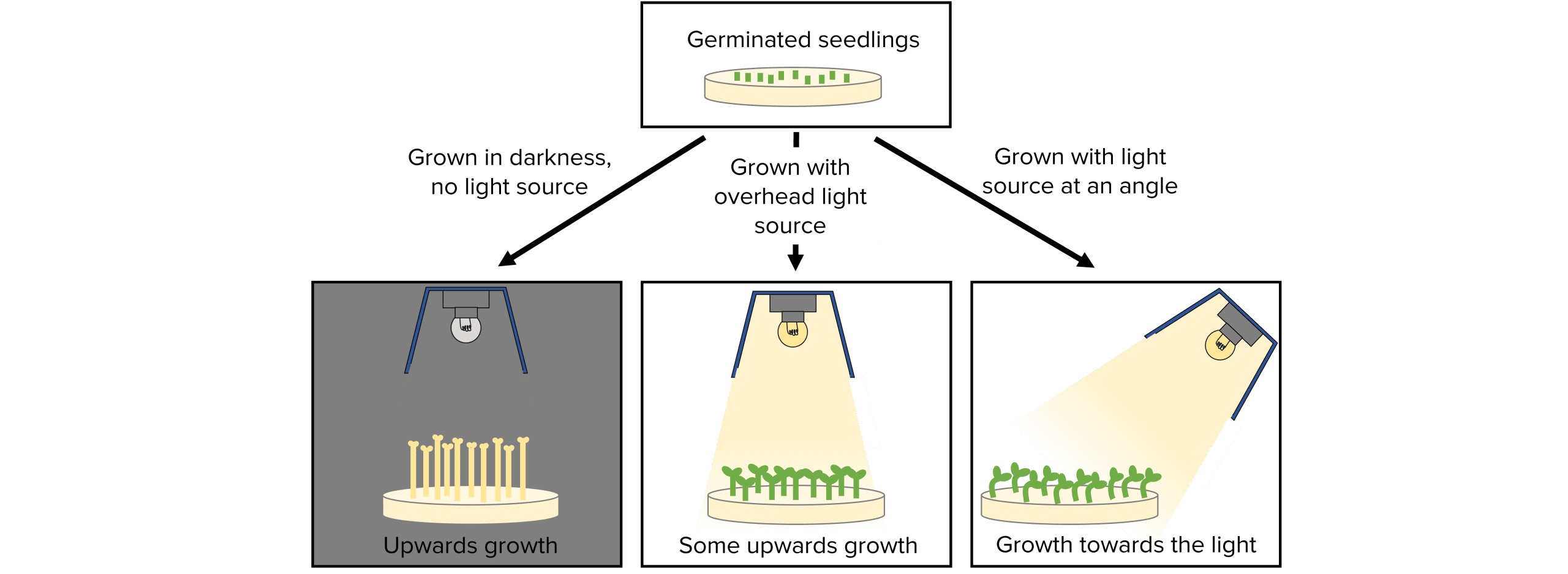 - Those with the light source at an angle will have grown in the direction of the light (phototropism) and will be healthy.