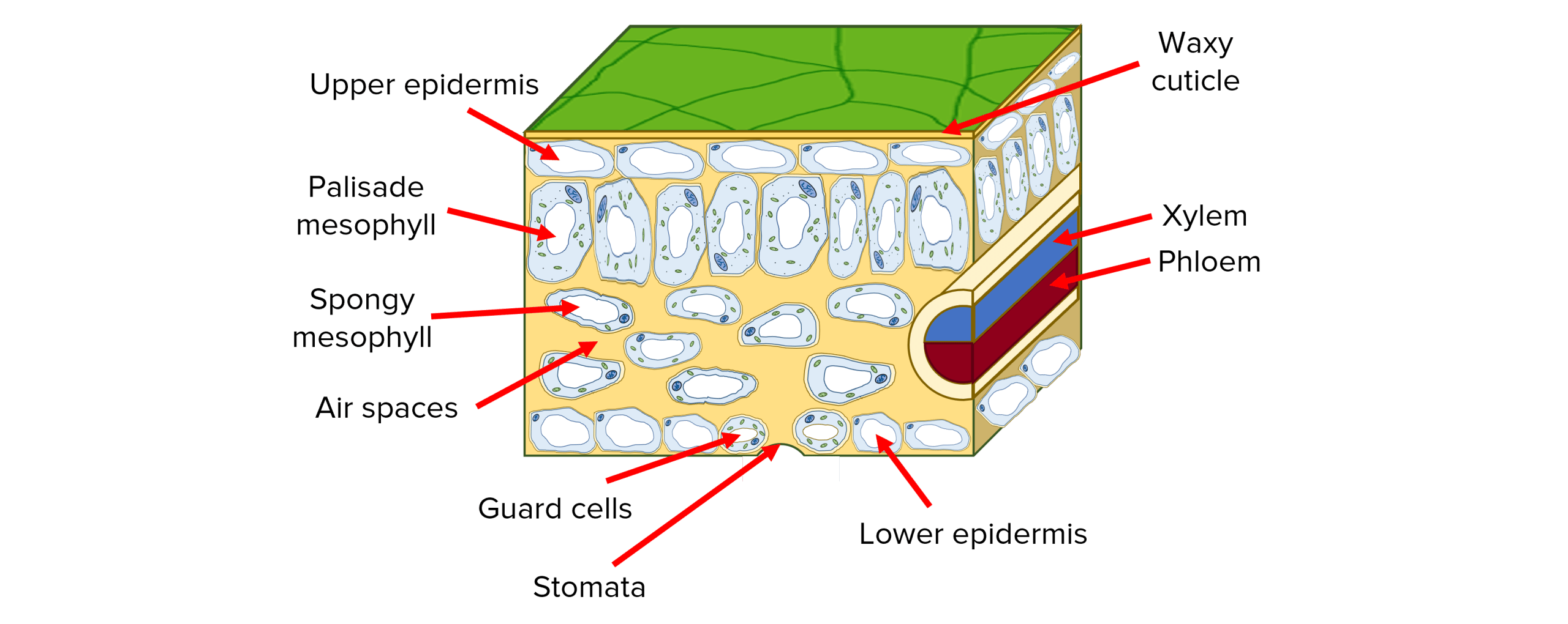 Leaves are plant organs responsible for the majority of photosynthesis and gas exchange. The structuring of the different tissues in a leaf mean they are adapted for these functions.