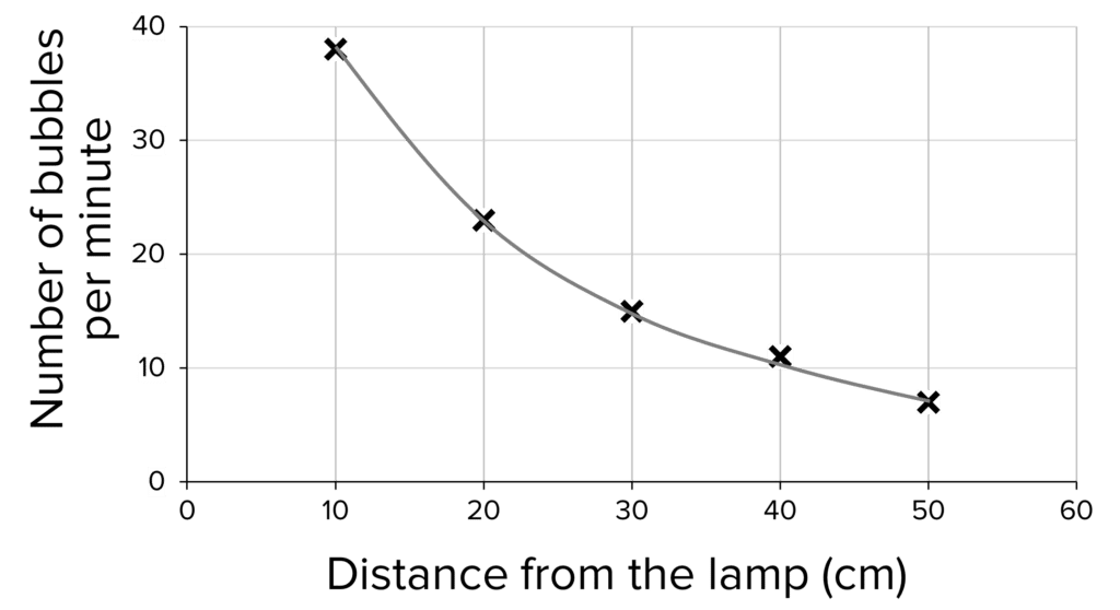 A graph can be plotted to show that the further the distance from the lamp, the lower the rate of bubble production.