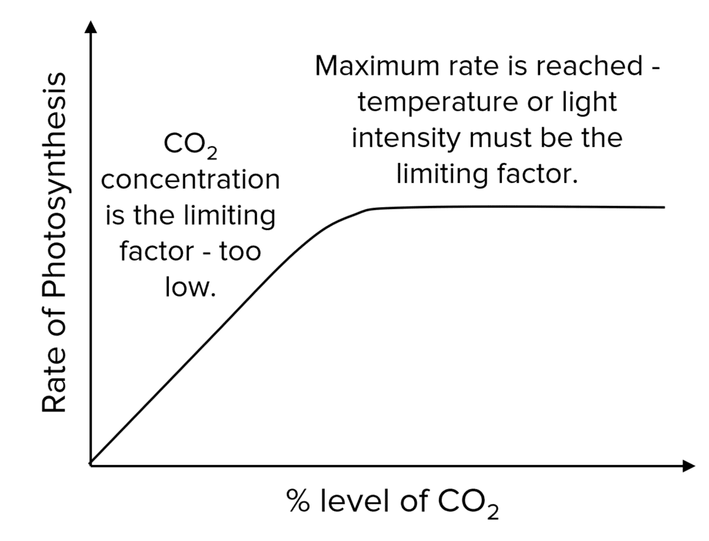 - After a certain point, other factors will become limiting, rate of photosynthesis will no longer increase with increasing carbon dioxide concentration.