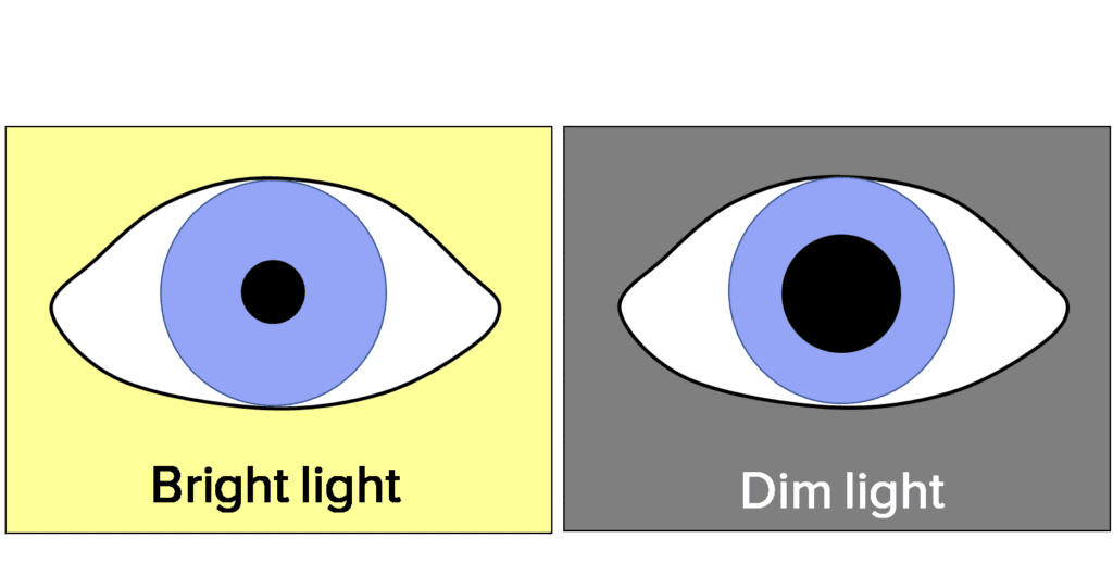 Dim light triggers a reflex arc.